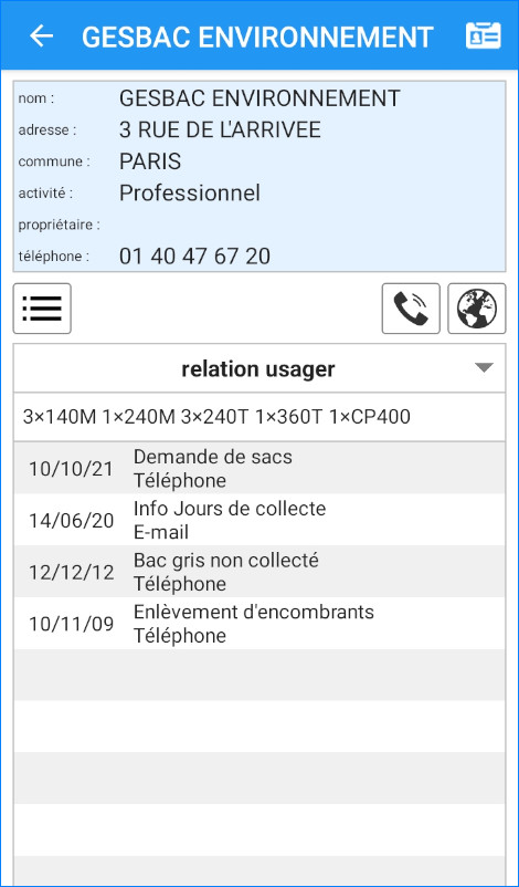 - La liste des contacts qui ont été réalisés avec l’usager