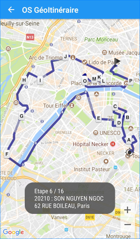 Affichage de la tournée optimisée sur un fond de plan