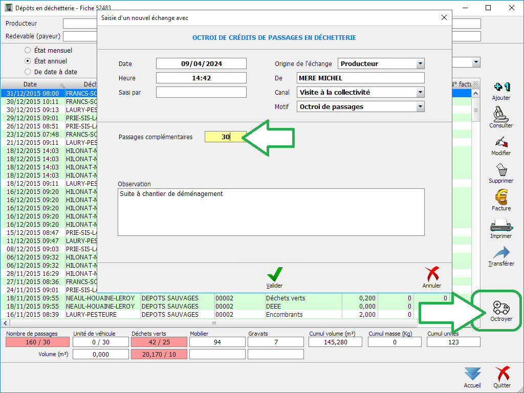- Consultation et modification des dépôts en déchetterie