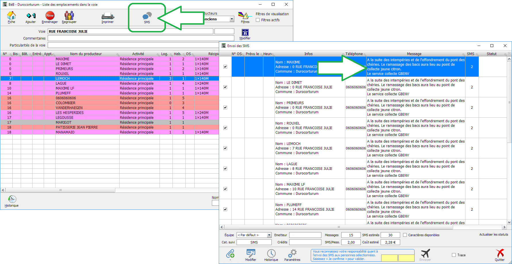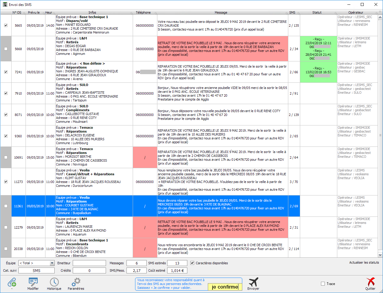 Les messages peuvent être préremplis selon le type d’opération, l’équipe ou le prestataire prévu puis personnalisés individuellement s’il faut y faire figurer une autre information.
