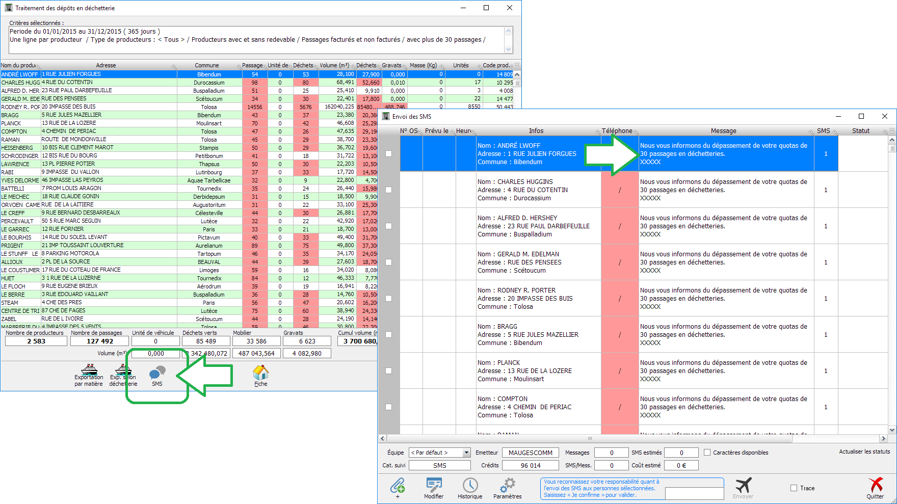 Relié à la gestion des ordres de services, vous pouvez envoyer des SMS aux usagers pour les avertir d’une opération de maintenance de leur bac poubelle.