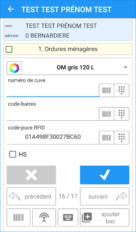 Dans le cadre d’une distribution massive de bacs roulants, le logiciel vous permet en cours d’enquête, d’estimer la quantité de matériels à mettre en place selon des règles de dotation ou de générer les bacs à mettre en place sur les fiches des usagers.