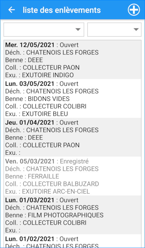 Le module logiciel de gestion des enlèvements de bennes ou des bas de quai de déchèterie permet d’enregistrer et de suivre la rotation des équipements pris en charge par les collecteurs entre le lieu de production des déchets et les différents exutoires.