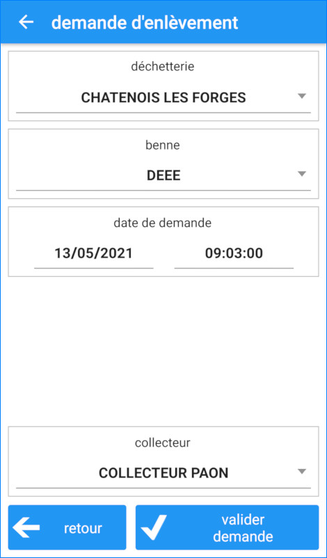Vous pouvez fournir l’application mobile aux gardiens de déchetteries qui feront les demandes d’enlèvement des bennes ou aux chauffeurs des camions des organismes de collecte.