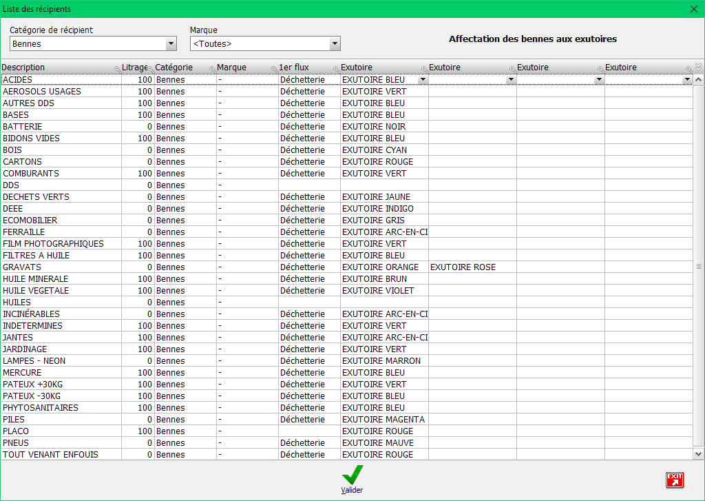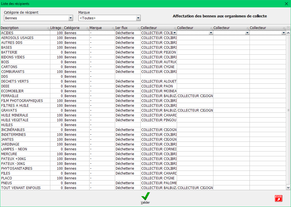 Les déchetteries, les bennes, les organismes de collecte et les lieux de traitement sont paramétrables sans limitation.