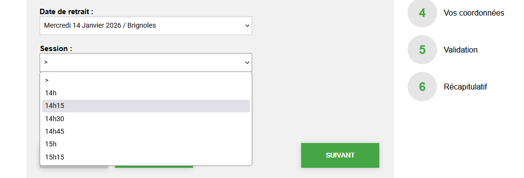 Un contrôle du nombre de places par session et par jour est réalisé lors de la demande d’un usager. Ainsi n’apparaissent dans la liste que les dates et les horaires où restent des places disponibles.