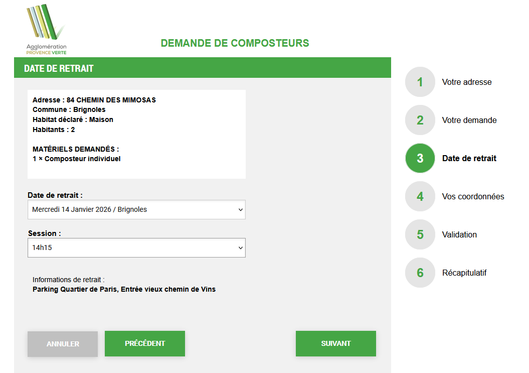 Demande de rendez-vous pour retrait de composteur
