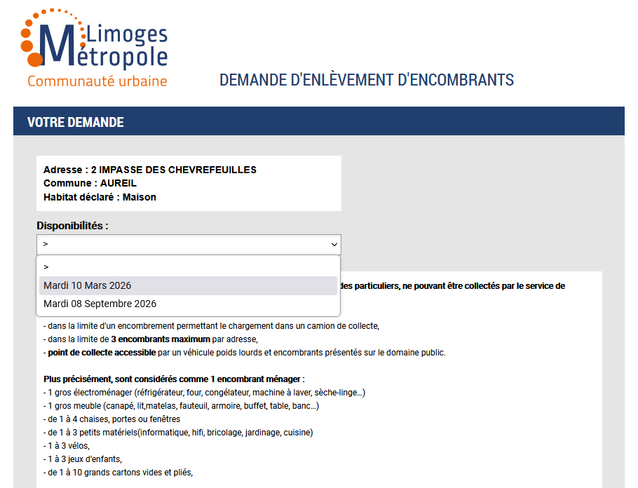Demande de rendez-vous pour enlèvement d’encombrants